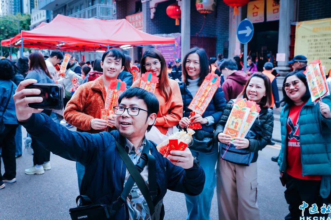 2月23日,農曆正月廿六日是“觀音開庫”的日子,大批善信前往廟宇祈福借庫。借庫熱點的紅磡觀音廟,今年借庫利市金額由3000萬至10億不等。當日,有海量善信在廟外“排長龍”,人龍延伸至附近的球場。(香港中通社記者 謝光磊攝)