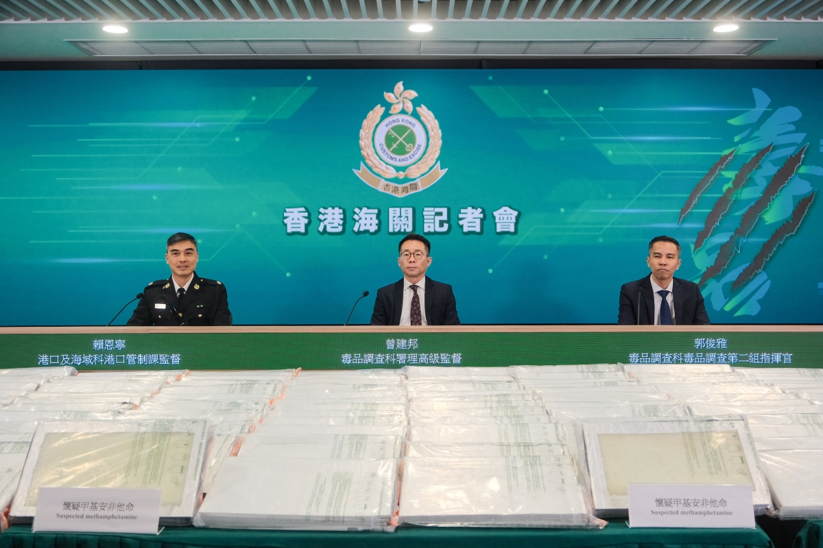 香港海關破販毒案檢約3.6億元懷疑冰毒分享到: