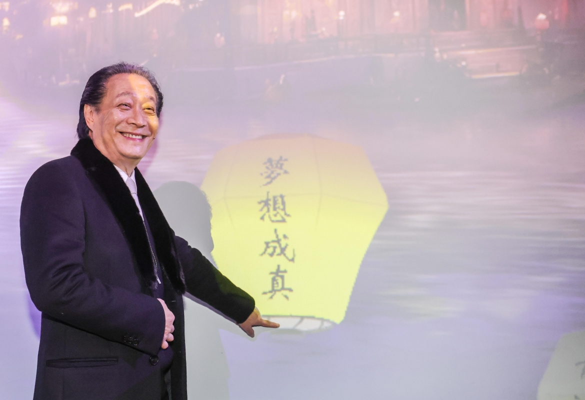 香港保安局副局長卓孝業(右八)、香港黃金交易所主席張德煕(左八)、藝文發展基金會會長謝景霞女士(右七)、新城首席營運總監馬浚偉(右五)、昂坪360董事總經理董沛銓(右六)、華夏文化娛樂公司行政總裁吳雨(右四)等嘉賓出席。
