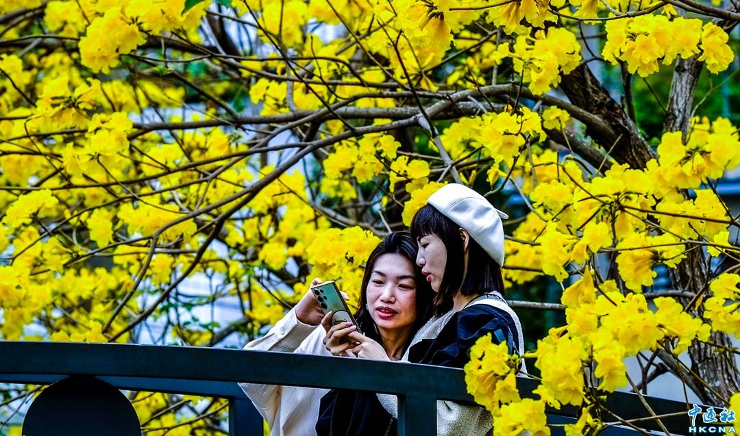 台灣彰化縣員林市的八堡圳大排兩側種植的黃花風鈴木,目前正是盛開綻放時刻,許多旅行社為此特別新增秘境景點,讓這裡ㄧ夕爆紅,成為民眾及網紅爭相前往拍照打卡最熱門的景點。 香港中通社圖片