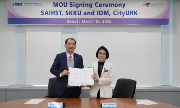 香港新聞網3月25日電 香港城市大學數碼醫學研究院及韓國三星融合醫科學院在3月18日於韓國首爾簽署合作備忘錄,建立合作夥伴關係,推動醫療健康相關的研究,包括細胞和基因治療、生物資訊科學和生物醫學工程等領域,並促進雙方在人才培育以至商業化應用的發展,共同促進社會的長遠利益。備忘錄由城大高級副校長(創新及企業)楊夢甦教授及三星融合醫科學院院長張允實教授簽署。 三星融合醫科學院(簡稱 SAIHST) 是韓國一所頂尖研究院,由來自產業界的三星集團、醫學界的三星首爾醫院,以及學術界的成均館大學共同成立,旨在推動先進研究、培育專家人才以帶領生物醫學科研的未來發展。該院是韓國首間於醫療健康研究及教育的跨學科研究學院,並與美、加、英、法等逾十國的醫院及研究所,以至國際及當地醫療業界、大型企業及生物科技公司等有合作。