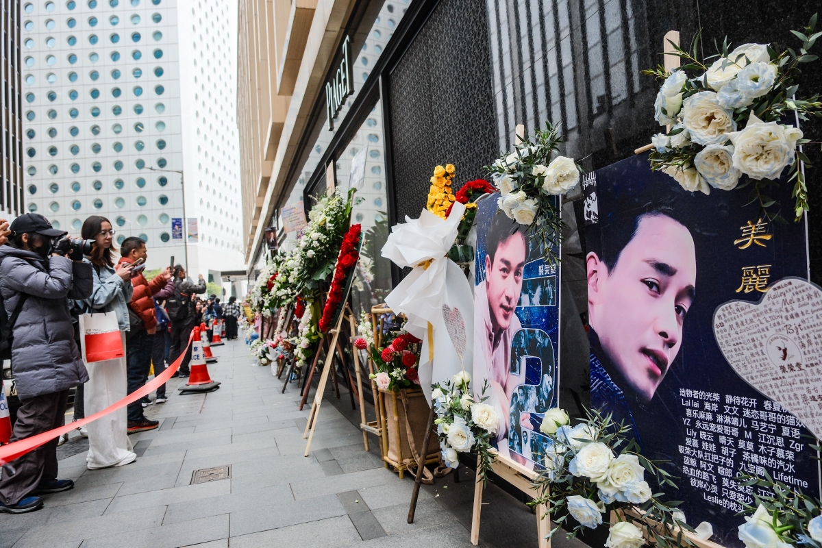 不少市民到文華東方酒店外悼念已故歌星張國榮