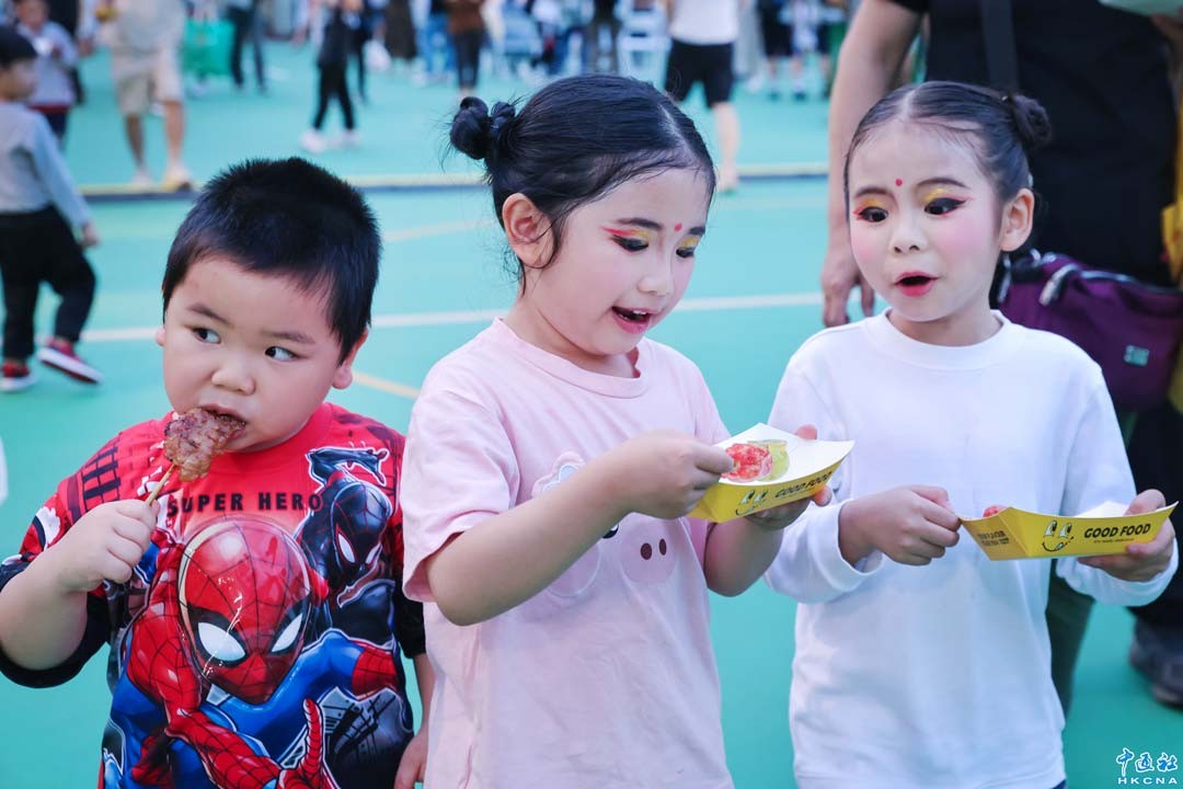 4月11日,“龍城美食潑水泰繽紛2025”在香港九龍賈炳達道公園熱鬧登場,為市民帶來一場充滿泰式風情的狂歡盛會。圖為小朋友品嚐泰國美食。(香港中通社記者 謝光磊攝)