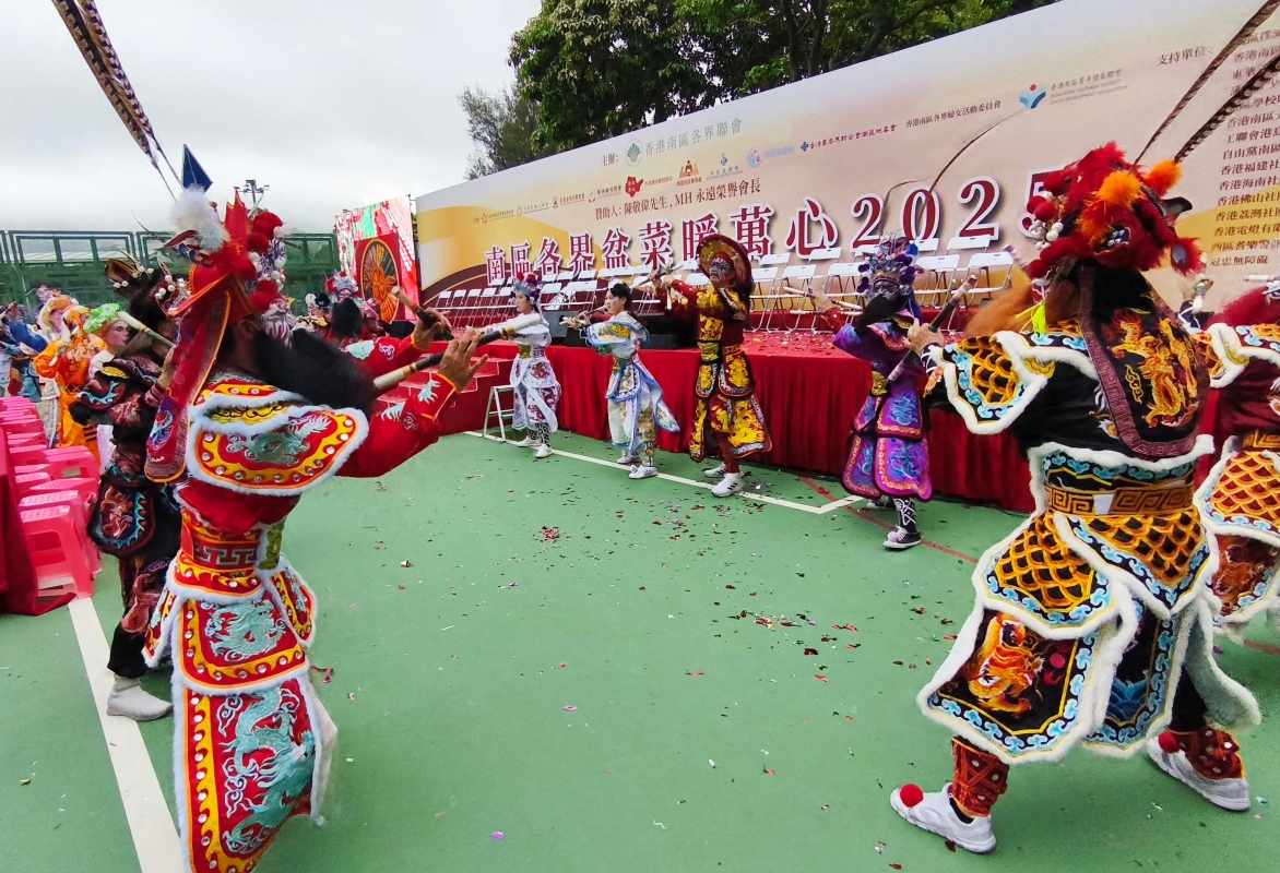 香港新聞網4月18日電 (記者洪少葵)4月18日下午,香港民政事務總署、香港汕頭社團總會與南區各界合辦“南區各界盆菜暖萬心2025”在黃竹坑遊樂場足球場舉行。活動旨在透過舉辦盆菜宴,供南區內的長者及弱勢社群一同享用,讓他們感受社區的關愛。現場近千桌盆菜,規模盛大,英歌舞在會場穿梭表演,場面熱鬧。