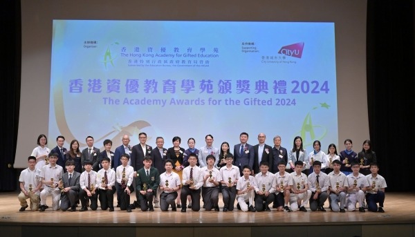 特區政府民政及青年事務局局長麥美娟女士為獲獎學生和校長頒獎