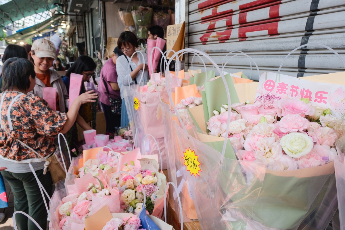 市民在花墟選購鮮花歡度母親節