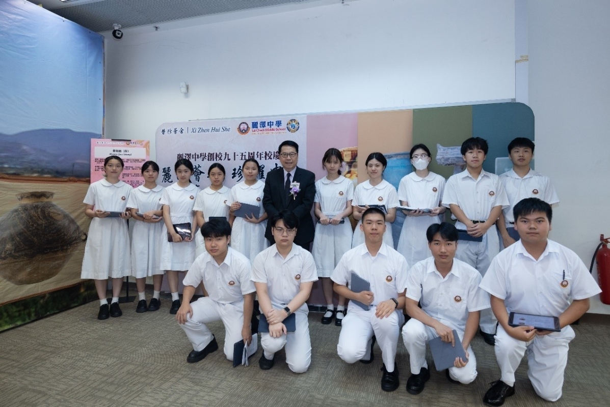 立法會陳凱欣議員(左一)、麗澤中學校監劉國偉牧師(左二)、香港故宮文化博物館館長吳志華博士(右二)、麗澤中學李潔明校長(右一) 展覽中,參觀者欣賞到珍貴文物,體驗到中華文化的博大精深。老師和同學合作,在布置、設計、安排活動、製作課程教學配套工作紙、規劃導賞安排、電子書編製、展品錄音導覽、VR虛擬實境場景及專題網頁等,都是互相幫助。此次活動不僅是對麗澤中學創校九十五周年的慶祝,也是對中華文化的傳承和弘揚。 麗澤中學是一所基督教津貼男女校,創校以來一直堅持全人教育,持守基督教精神及弘揚中國傳統文化,九十多年來一直默默耕耘,努力不懈,傳承創新,展現文化氛圍。李潔明校長表示麗澤中學的辦學宗旨就是體現出中華文化的優秀一面,中華文化優秀之處在於積澱著一種奮發向上、追求卓越、開拓進取的精神,君子以自強不息。麗澤校名,出自《易經》兌卦“麗澤兌,君子以朋友講習。”意思有二,其一是同學間能以善行相濡染,以知識相灌輸;其二是教師們能教學相長,互相策勵。校訓“自強不息”,同本於《易經》“天行健,君子以自強不息。”意思是勉人當如日月之運行,周而復始,晝夜不息。 麗澤中學李潔明校長既是大學中文系畢業,又是資深中國語文及中國文學科教科書作者,深明中華文化與價值觀教育、人文素養密不可分,在課程發展、教師專業、全方位學習等各方面都能希望融合中華文化的元素,例如文物展覽,展現學校在傳承和實踐上所作出的努力,透過教師身教言傳,同學的在知情意行上的實踐,建構出全面的學習氛圍。 展覽分為“仰韶文化”、“二里頭文化”、“明清珍品”、“廣州十三行”及“錢幣經濟”幾大主題。“仰韶文化”介紹分佈在黃河中游地區的一種重要的新石器時代文化,以彩陶為顯著特徵,以紅陶黑彩聞名,紋飾涵蓋幾何圖案、魚紋及人面紋等。“二里頭文化”以青銅禮器(爵、斝)、宮殿基址和綠松石鑲嵌工藝著稱,其中灰陶三足盉造型典雅,可能用於溫酒祭祀;繩紋灰陶鬲具寬大袋足,反映炊煮實用性,繩紋裝飾粗獷,反映日常炊煮生活。社會階層分化明顯,擁有專業青銅冶鑄和製陶作坊。從古代的青銅器、瓷器等各種器皿,大家可欣賞中國獨特的工藝特色。而南青北白、遼銘文金銀盤、商銘文青銅爵杯、唐三彩,讓參觀同學從不同的展品,深入了解古代中國的社會生活面貌,例如穀倉的模型,改變了傳統農業的運作,透過不同的文物都有不同的故事,可以更加認識國家在科技、藝術、經貿方面的歷史演變。“明清珍品”可以細賞清代帝王的龍袍、聖旨,讓參觀者鑑賞清朝皇室尊貴的宮廷文化,“錢幣經濟”則從古代的錢幣和貨幣,帶領大家探索當時的經濟發展。“廣州十三行”及“抗戰時期”的軍票及學校善長捐贈半費學額的文物,讓同學都深入體會到文物與生活息息相關,有助強化學生對國情、中華文化、傳統價值觀的認識,今次的文物展覽正好讓同學從文物中活學歷史,也讓同學更加深入了解我國文化的底蘊,說好我國的歷史及文化的故事。 選修中史科和歷史科中四級龐俊偉同學表示,欣賞文物有助預備文憑試,舉例廣州十三行的文物,有助了解清朝時期一口通商的情況,及至鴉片戰爭之後,簽訂不平等《南京條約》,除割讓香港島之外,變成五口通商。“看完文物再加上一些延伸的閱讀,有助自己對那段時期的歷史有更深入的了解,考試時也能想起與文物相關的歷史例證。” 中四級薛龍兒同學擔任文物導賞員,她表示非常難忘,帶領訪校的小學生對中華文化也有一定的認識,例如他們看到瓷器上的繪製著名畫作《清明上河圖》的畫面,可見中華文化已是不斷傳承的,只要我們努力說好我國的故事,會有更多人認識和傳承下去。 個人、社會及人文學科總科主任陳佩儷老師認為在學校舉行文物展覽,除了能讓學生近距離觀賞文物之,更重要的是讓學生在策展的過程中,學習與文物對話,因為藏品本身具有不同的歷史意義,同時文物經歷不同的年代也有不同的故事或經歷,這些學問都不是簡單在課本上可以寫出來。同時展覽又可以邀請不同的團體到校參觀,同學充當導賞員的角色,又錄製了聲音導航,這些都是把服務學習、探索學科知識和興趣融合在這個場景當中,更添加了網上電子書及VR元素,讓展覽變得更立體,延展的範圍更廣闊。 學校發展主任陳潔英老師表示有不團體預約參觀,有小學和社區團體,當中長者也對文物深感興趣,透過文物展覽,也同時參與服務學習,相信對同學能建立自信,也培養同學對熱愛社區,有責任心和服務精神。 李校長表示,此次展出的文物不僅是歷史的見證,更生動盛載著前人的生活智慧與精神追求。“透過這些文物,同學們既能回溯過往的生活畫面,也能從中汲取靈感,想像未來的可能性。”他強調,麗澤中學正邁向百年校慶,始終堅持將中華文化傳統與基督教“愛與服務”精神融合,例如透過文物展覽實踐“朋友講習”的校名理念。學校以“自強不息”為訓,培養學生勤學、堅毅與謙和的素質,“正如展櫃中的青銅器歷經淬煉而彌堅,麗澤人也將在傳統與創新的交融中,迎接未來挑戰,貢獻社會。”(完) 【編輯:徐嘉儀】