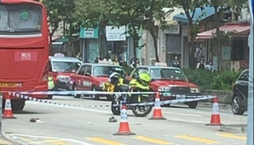 據網上圖片,現場地上遺下大灘血跡,警方正調查事故起因。消息指,事發時男途人正橫過馬路,該處並無行人過路處。