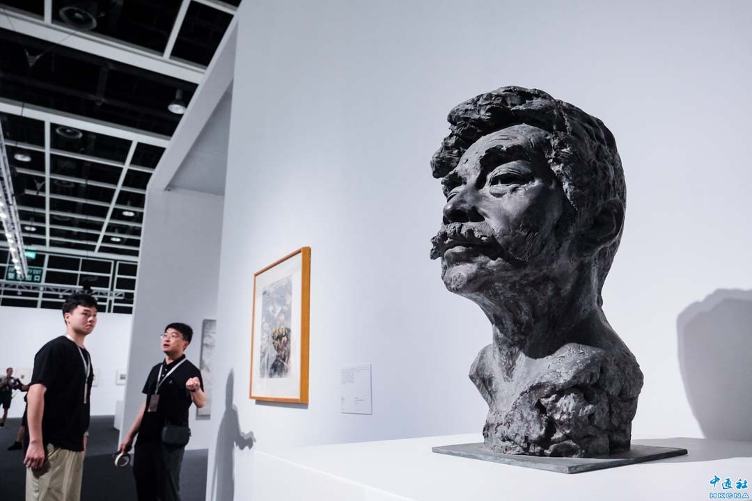 5月22日,其命惟新——廣東美術百年大展(香港)在香港會展中心開幕。展覽展出高劍父、高奇峰、關山月、黎雄才等嶺南名家百餘件經典作品,展示一百多年間廣東美術的重要成就,讓觀眾更好領略嶺南畫派等流派的獨特魅力。(香港中通社記者 許其皓攝)