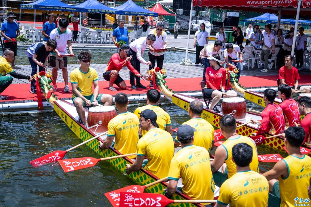 5月22日,嘉賓出席澳門國際龍舟賽祈福儀式。當日,由澳門體育局、澳娛綜合度假股份有限公司及龍舟總會主辦的2025澳娛綜合澳門國際龍舟賽,將於周六、日(24及25日)以及端午節正日在南灣湖水上活動中心舉行,主辦單位舉行祈福儀式,冀賽事順利舉行。消防局、永利及澳娛綜合三支龍舟隊伍提前亮相,為賽事預熱。香港中通社圖片