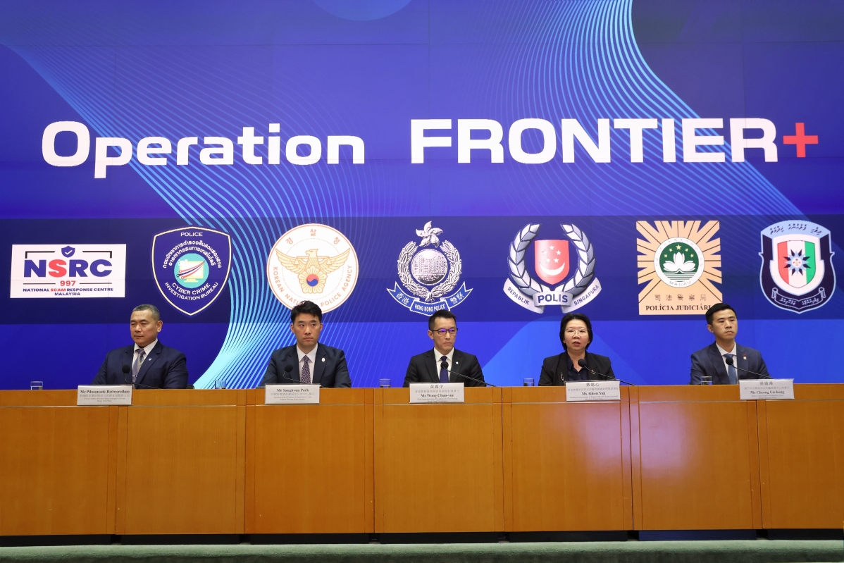 香港新聞網6月3日電(記者 謝光磊 )6月3日,香港警務處聯同多個國家地區舉行記者會,簡介聯合打擊跨境詐騙的拘捕行動。去年10月香港警務處聯同6個國家及地區的反詐騙中心,組成反詐跨境合作平台,並在4月底至5月底進行首次聯合行動,成功識別並瓦解多個跨境詐騙網絡,共拘捕1858人(年齡介乎14至81歲),涉及9268宗詐騙案。香港警務處商業罪案調查科總警司黃震宇、新加坡警察部隊反詐騙指揮處助理警察總監葉葛心、大韓民國警察廳國家反詐中心警正Sanghyun Park、泰國國家警察網絡犯罪調查局警察上校Piboonsook Ratiwerotkun和澳門司法警察局反詐騙協調中心負責人張遠鴻出席記者會。