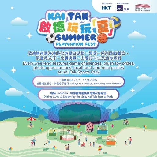 “啟德玩玩夏”坐落“香港主場”啟德體育園的海濱,參加者可親身挑戰不同運動主題遊戲。嘉年華設有包括足球、籃球、高爾夫球、排球等逾 10 款挑戰,將運動場上講求的反應力、準繩度與團隊合作變成互動體驗,大人小朋友都能輕鬆投入。出示遊戲代用券即可參加運動挑戰,成功過關有機會贏走 Hot Toys 收藏精品、超人氣 Labubu 公仔等潮物獎品。 兒童專屬的充氣彈跳專區佔地逾 2 千呎,設有充氣障礙及遊戲裝置,更會在特別日子舉行親子互動健身環節,讓小朋友盡情跳躍奔跑,釋放無窮活力,享受屬於暑假的快樂時光。