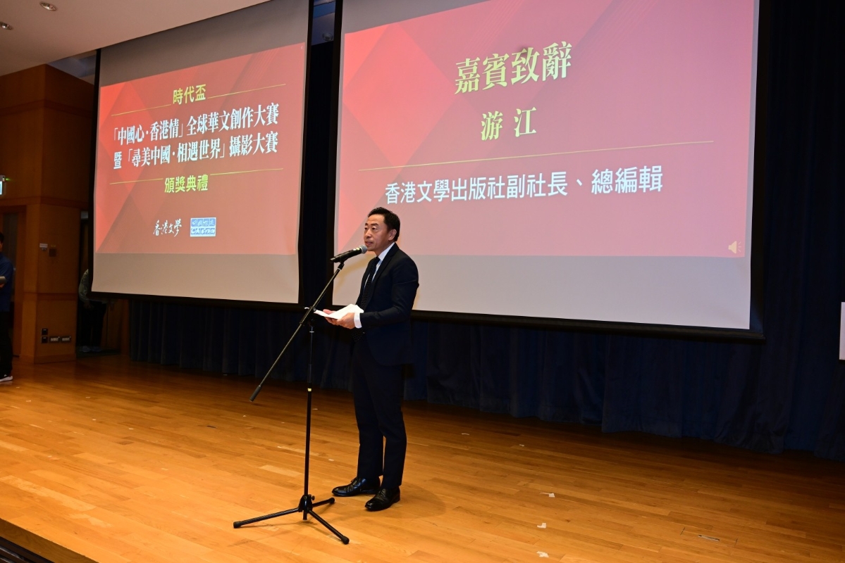香港新聞網6月21日電 時代杯“中國心·香港情”全球華文創作大賽暨“尋美中國·相遇世界”攝影大賽頒獎典禮6月21日在香港大學舉行,來自港澳、內地及海外文學界、攝影界人士二百餘人出席活動。 據主辦方香港文學出版社、香港中國旅遊出版社介紹,兩大賽事同步於2024年9月啓動、今年3月10日結束徵稿,得到全球華文文學愛好者及攝影愛好者的廣泛關注和熱情參與。
