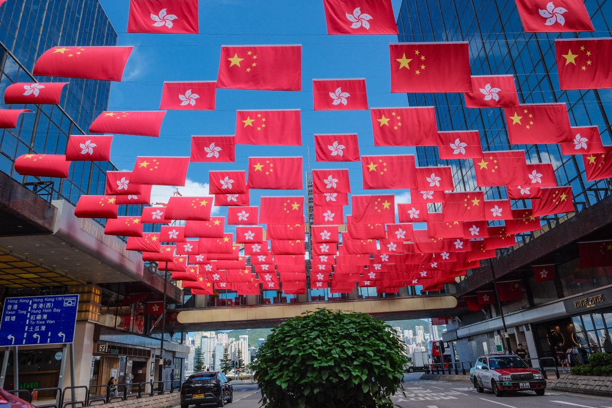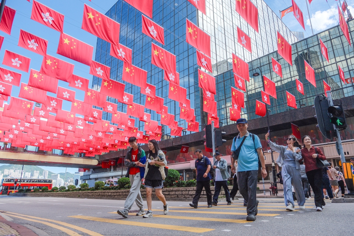香港街頭旗幟飛揚 慶回歸氣氛濃