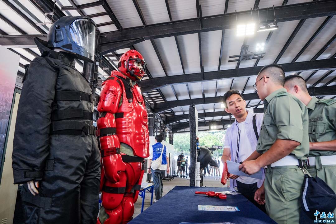 香港警隊6月22日在香港警察學院舉辦“警察招募.體驗日”,主題為“同行.致遠”,招募見習督察、警員及輔警。參加者可透過一系列活動體驗警隊遴選程序、警察學院訓練及了解多元化的警務工作。(香港中通社記者 許其皓攝)