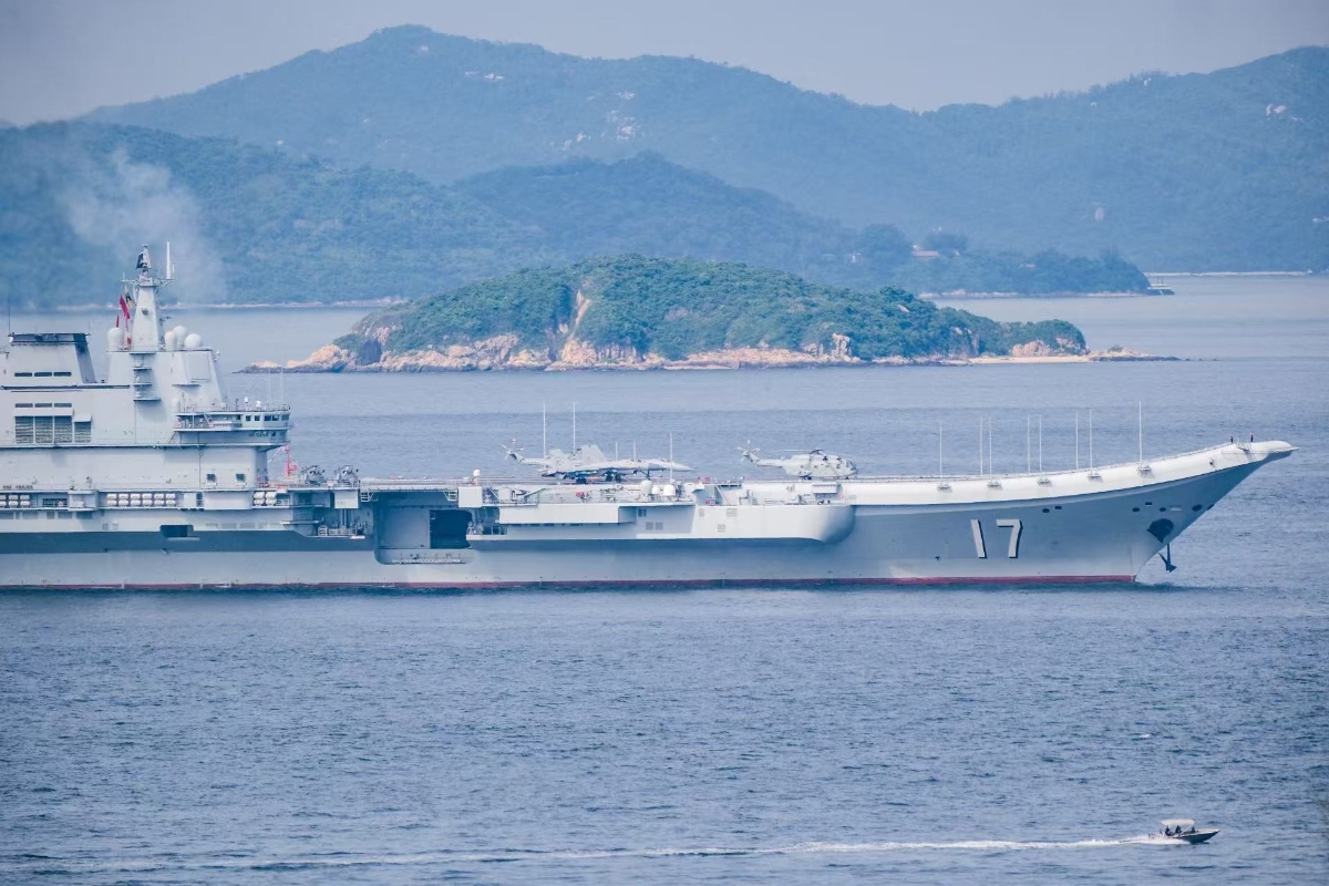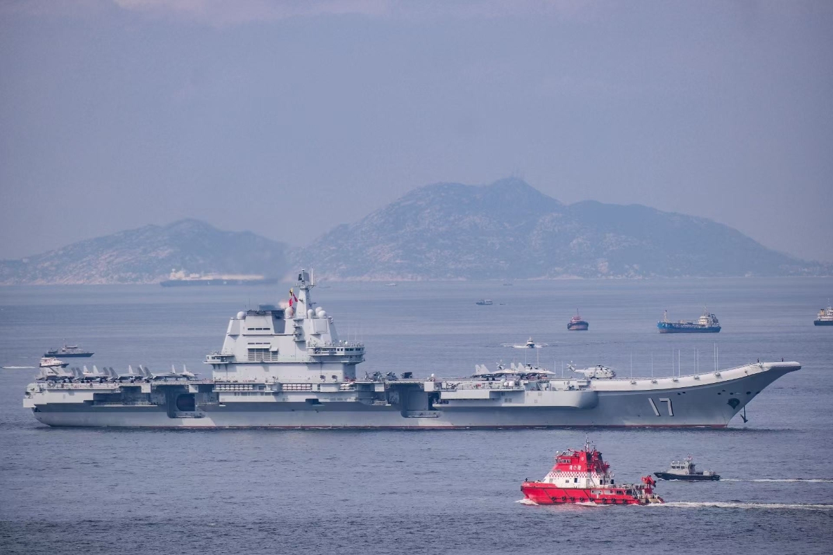 由航母山東艦、導彈驅逐艦延安艦、湛江艦,導彈護衛艦運城艦組成的海軍艦艇編隊抵達香港