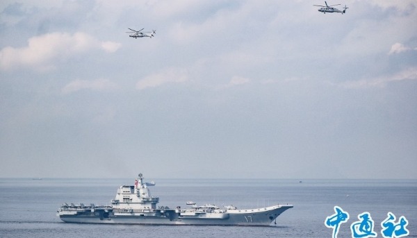 山東艦航母經過青衣海面