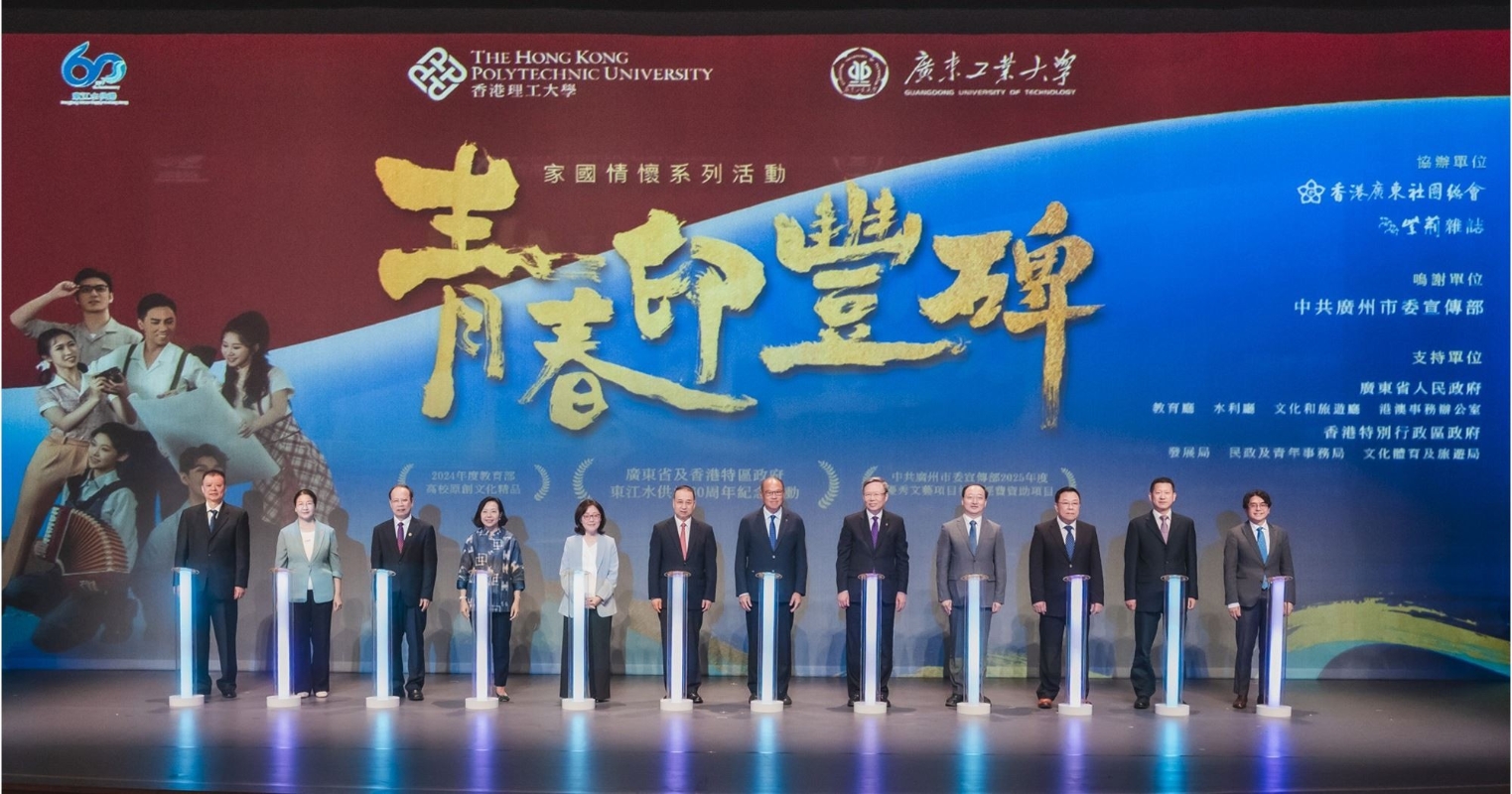 理大網站圖片 活動包括於香港正式首演、廣工大及理大學生傾力演出的原創舞台劇《青春印豐碑》,同場更舉辦紀念展覽,讓觀眾回顧東深供水工程的珍貴歷史。兩天演出共吸引逾一千名政商界領袖、社會賢達、兩地師生、校友及公眾人士出席,一同感受東深建設者震撼人心的故事。 《青春印豐碑》舞台劇假理大賽馬會綜藝館舉行,設預演(7月9日)和首演(7月10日)。首演開幕儀式主禮嘉賓包括中央人民政府駐香港特別行政區聯絡辦公室(中聯辦)副主任劉光源先生、香港特別行政區政府發展局局長甯漢豪女士、民政及青年事務局局長麥美娟女士、理大校董會主席林大輝博士、廣工大黨委副書記及校長邱學青教授、理大校長滕錦光教授、廣東工業大學黨委副書記朱蔚蔚女士、廣東省港澳事務辦公室副主任及一級巡視員張志華先生、廣東省水利廳一級巡視員孟帆先生、全國政協委員及香港廣東社團總會常務副主席兼秘書長吳華江先生、紫荊雜誌社副社長黃曉華先生,以及水務署署長黃恩諾先生。 《青春印豐碑》作為今年“理大中華文化節”重點項目之一,彰顯了國家對香港民生福祉的深切關懷,更獲列入廣東省及香港特區政府東江水供港60周年紀念活動,並被評為教育部“2024年度高校原創文化精品”。 劇本以東深建設者為原型,弘揚“時代楷模”精神為主題,重現1960年代內地大學生響應國家號召,投身東深供水工程建設並順利完成任務的感人故事。全劇以《青春宣言》、《青春交響》、《青春考卷》及《青春逐夢》四個篇章敘事,從東深供水工程建設者兼廣工大昔日校友的視角,在過去、現在和未來之間穿梭,呈現年青學子投身祖國建設的豪情壯志。劇中更首次採用粵語對白,以及融入參加“百千萬工程”建設的粵港澳大學生身影來呈現東深故事。(完) 【編輯:徐嘉儀】
