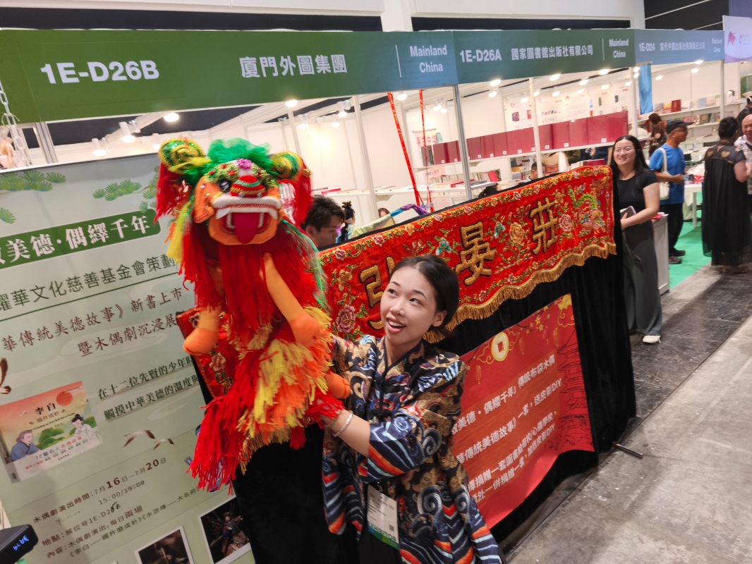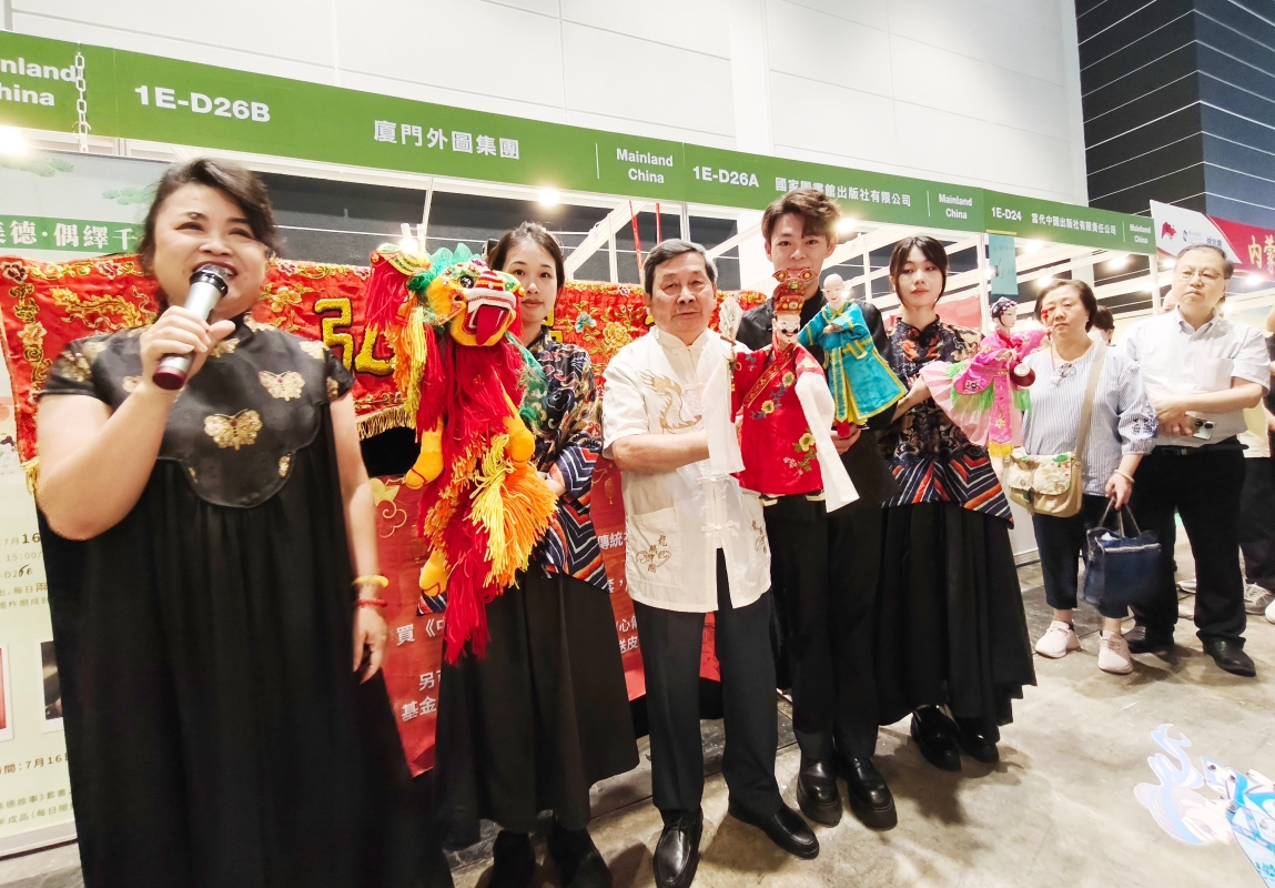香港新聞網7月19日電 (記者洪少葵)7月19日,正在香港會展中心舉行的第35屆香港書展上,大批市民和訪港遊客入場,現場人山人海。今年書展以“飲食文化・未來生活”作年度主題,超過770家展商參與,讓書迷從飲食為題的作品中細味文化風情、生活態度,並探索未來科技孕育的新飲食文化。 連日來,書展場內香港耀華文化慈善基金會策劃《中華傳統美德故事》新書上市暨木偶劇沉浸展演吸引眾多現場觀眾駐足欣賞。展商希望透過非遺文化的深厚底蘊,讓觀眾感受到傳統藝術的魅力。來自廈門“弘晏莊木偶皮影戲傳習中心”80多歲的藝術家莊陳華是國家級非遺項目木偶戲代表性傳承人、國家一級演員、享受國務院特殊津貼。他表演布袋木偶戲《水滸傳-大名府》是“盧俊義化裝成賣藝人士混進城”的情節。在藝術家莊陳華和他團隊的表演下,節目精彩紛呈。香港漳州市區同鄉會在會長林紹奮的帶領下,一眾鄉親特地到場觀賞木偶戲表演並和莊陳華、莊晏紅藝術家合影。