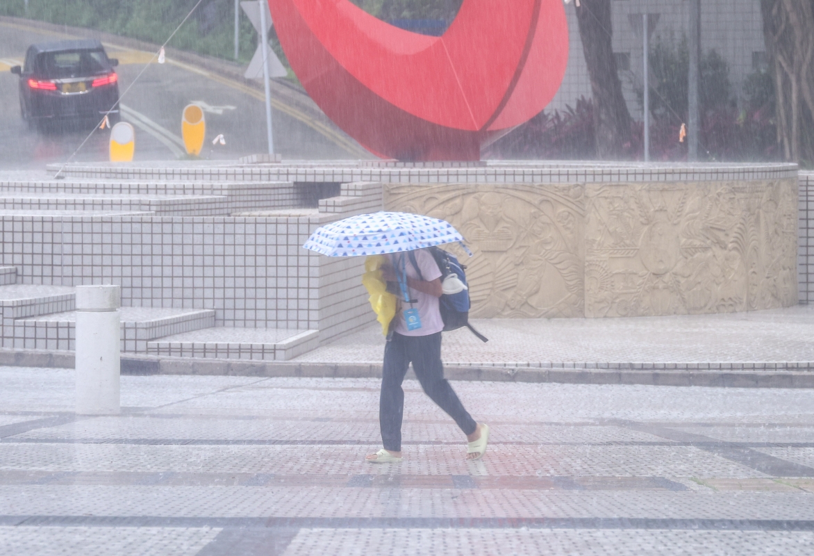 香港中通社圖片。 當日早上,天文台先於8時05分發出黃色暴雨警告信號,35分鐘後改發紅色暴雨警告信號;約半小時後,改發黑色暴雨警告信號。期間,天文台一度發出局部地區大雨提示,指西貢區及港島東區的雨勢特別大。