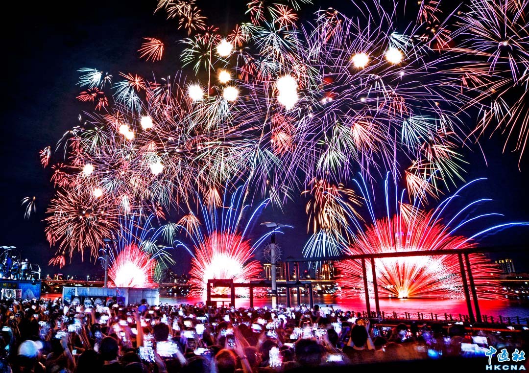 台灣台北市“2025大稻埕夏日節”煙火秀8月20日晚上8時在大稻埕碼頭施放。這次煙火的主題為“金埕水漾”,以金色與暖橘色為主調,金色流蘇與菊型煙火同步展現,營造出如金光灑落水面的壯觀場景。 香港中通社圖片