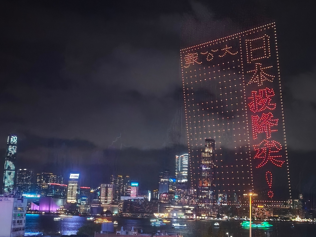 香港新聞網8月30日電(記者洪少葵) 為紀念中國人民抗日戰爭暨世界反法西斯戰爭勝利80周年,銘記歷史,致敬先烈,由紫荊文化集團主辦、紫荊雜誌社承辦,於8月30日晚上8:00在灣仔水上運動及康樂主題區舉行大型無人機匯演。 通過1200架無人機點亮灣仔夜空,以科技加藝術方式反應抗戰爆發後,中國人民眾志成城奮勇抗戰,贏得最終勝利和民族解放的偉大事跡。
