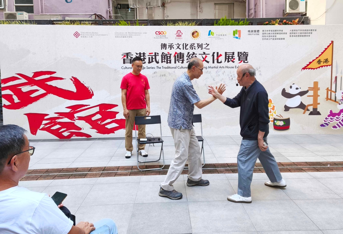 香港新聞網9月13日電(記者洪少葵)9月13日,不少街坊和市民在灣仔茂蘿街7號參觀展覽和感受傳統武術的魅力。當天,香港寶芝林李燦窩體育會永遠會長李燦窩師傅在現場口述香港傳統武術歷史和示範洪拳招式。李燦窩師傅是黃飛鴻夫人莫桂蘭嫡傳弟子,香港洪拳武術家及中醫師。 為傳承中華傳統文化,香港理工大學專業及持續教育學院學生事務處於今年9月至10月舉辦“中華文化傳承系列:武館.瑞獸.華衣.武藝”,讓市民以沉浸式體驗中華傳統文化的瑰麗世界。其中,9月12日至14日率先展出的“香港武館傳統文化展覽”,重塑昔日香港武館及跌打館的原貌,並有醒獅、麒麟、貔貅工作坊,讓公眾感受瑞獸魅力;武館師傅會即場示範國術,分享武館生活秘聞。亦展示傳統“花炮紮作”工藝,讓市民欣賞到這項瀕臨失傳的非遺技藝,展覽更邀請多個知名武術門派的師傅進行精彩展演,讓市民和武術愛好者感受中華文化的多元魅力,共同推動文化傳承與社區連繫。