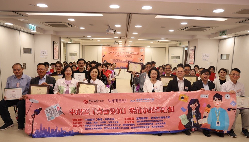 香港“青春啟航”紫荊小記者計劃共38名學員順利結業香港新聞網9月19日電 由紫荊雜誌社、香港期刊傳媒公會主辦、中國銀行(香港)特別贊助的“青春啟航”紫荊小記者計劃,近日在香港隆重舉行結業暨頒獎典禮。活動旨在培育具備家國情懷、國際視野與專業素養的新一代青少年傳媒人才,吸引全港逾20所學校、50多名學生參與,最終38名學員順利結業,22件優秀新聞作品獲獎,現場氣氛熱烈,見證香港青少年傳媒力量的蓬勃成長。 香港立法會議員、中銀香港總法律顧問簡慧敏,香港期刊傳媒公會主席、鏡報執行社長徐新英,中國銀行(香港)企業社會責任辦公室副總經理葉麗麗,紫荊雜誌社總編輯袁建,以及香港青少年軍高級培訓顧問陸海豪等出席活動並擔任主禮嘉賓。