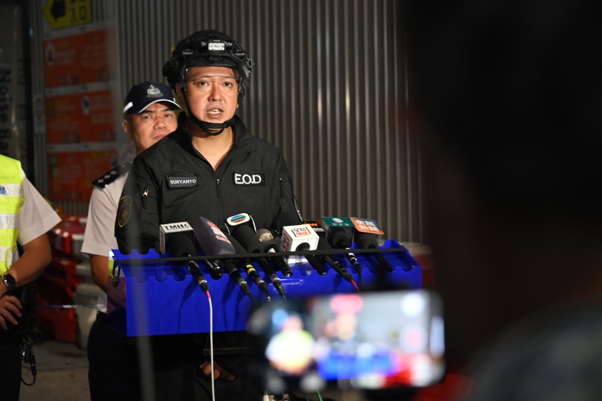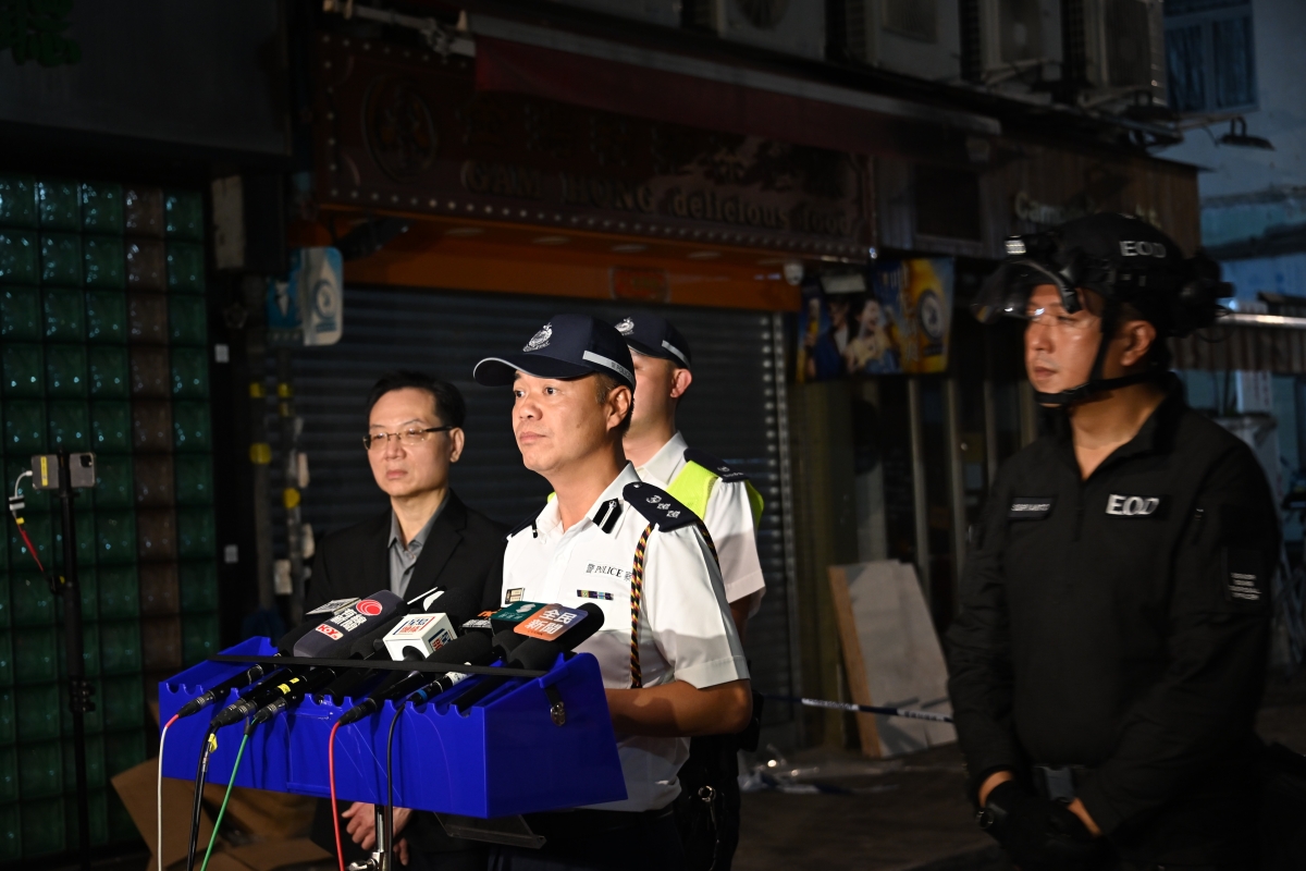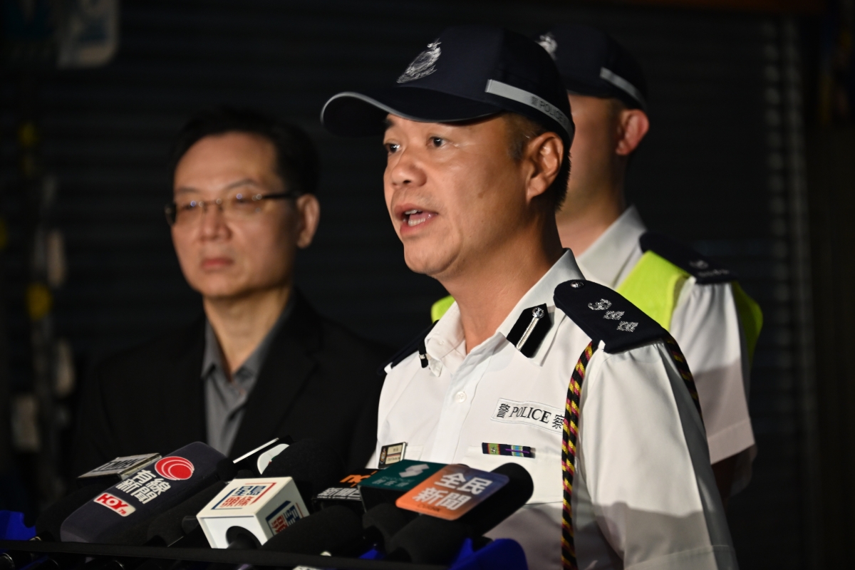 香港警方東區警區指揮官陳天柱凌晨向記者公佈進展。