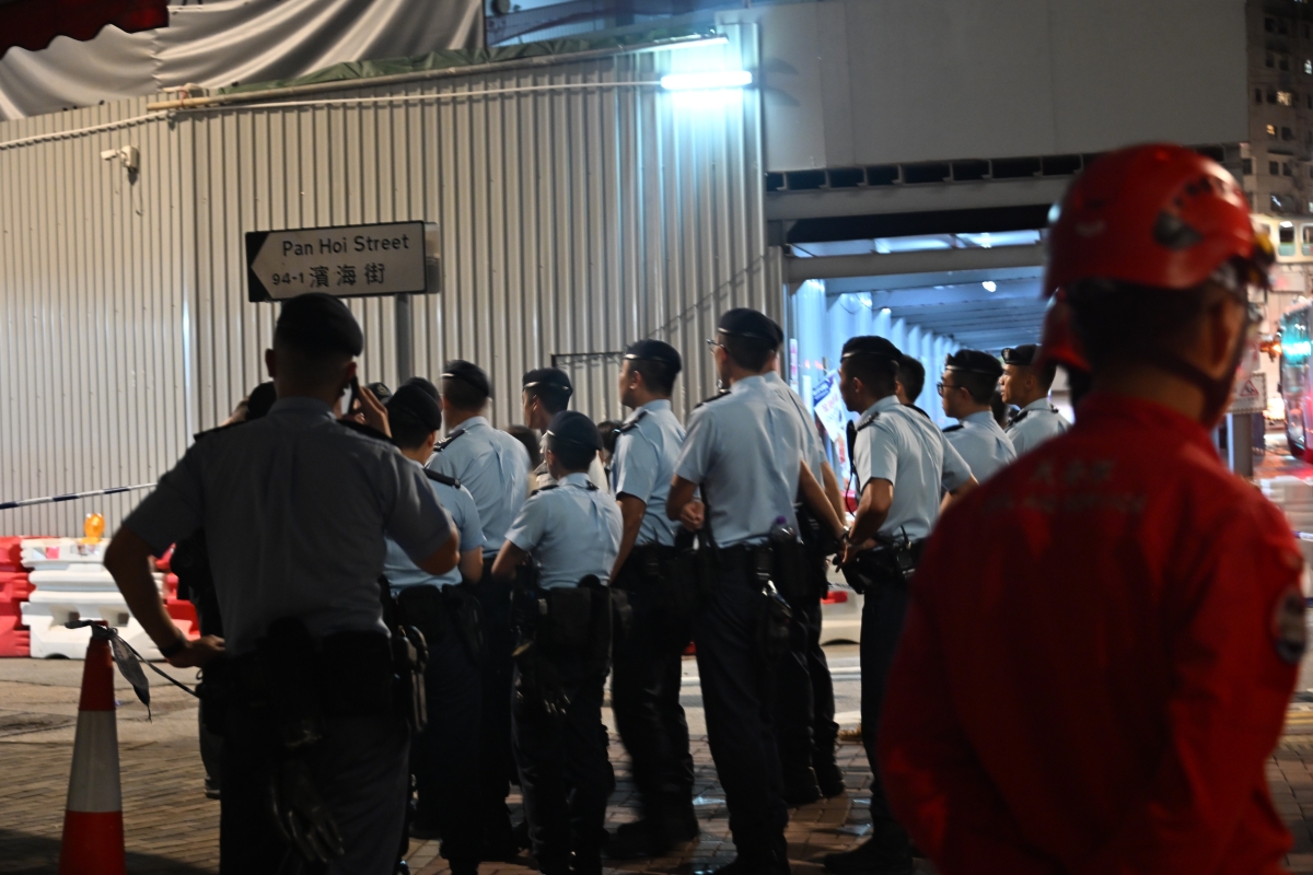 9月20日凌晨,大批警察和消防處人員在場戒備。