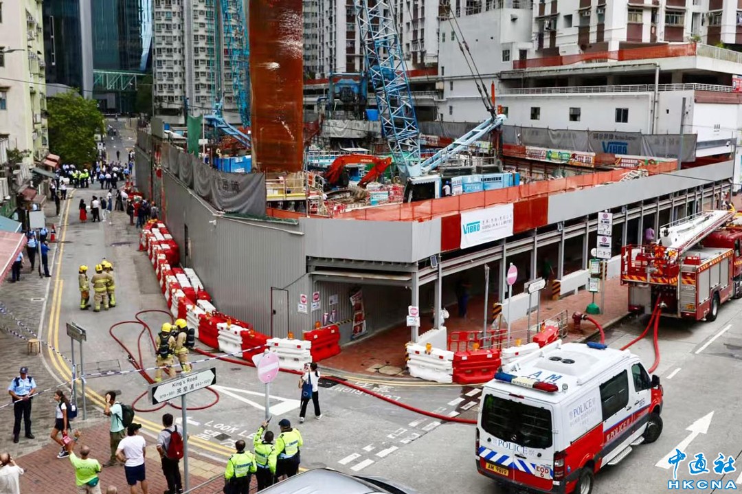 9月19日,香港鰂魚涌濱海街一個地盤有人發現懷疑戰時炸彈,警方封鎖現場將疏散範圍進一步擴大,除了地盤及附近商舖外,在太古坊二座地下的人士亦要疏散。現場消息指,建築工地發現長達1.3米的戰時炸彈,由於位置極近民居,為確保安全,相關部門正組織疏散受影響範圍的人群及居民,完成疏散後才能處理炸彈。(香港中通社記者 洪少葵攝)