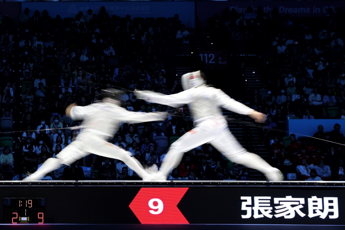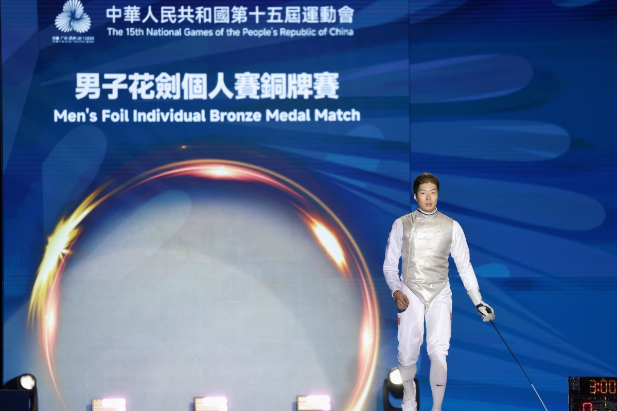 香港新聞網11月16日電(記者謝光磊)11月16日,第十五屆全國運動會男子花劍個人比賽在香港啟德體藝館舉行。 在銅牌爭奪賽中,香港選手張家朗擊敗以個人身份參賽的曾昭然,奪得銅牌。 世界排名第13位、兩屆奧運冠軍、28歲的張家朗迎戰曾於2023年奪得世青賽銀牌的20歲小將曾昭然。開賽先失1分,之後連取多分,只用了一節時間就以15:2大勝對手。