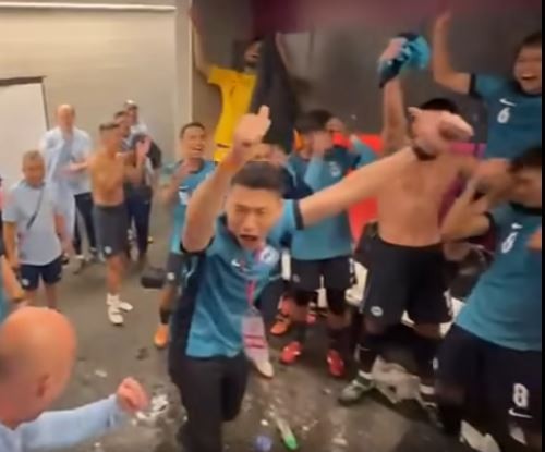 梁振偉(中)在更衣室得意忘形爆粗辱罵香港球迷和球員。影片截圖 11月18日,在香港舉行的亞洲杯外圍賽關鍵戰中,新加坡國家男子足球隊以2比1逆轉險勝香港,結束41年的漫長等待,拿到2027年沙特阿拉伯亞洲杯的正賽資格。梁振偉在賽後與隊員慶祝時,竟以“笨蛋”形容香港隊球員和球迷。 當時,球員伊山範迪(Ikhsan Fandi)正在社交媒體直播更衣室的慶祝情況,視頻中可見梁振偉向隊員致意時說道:“你們承受了他們的壓力……他們的球迷像笨蛋(bloody idiots),他們踢得也像笨蛋,而你們踢得像‘雄獅’!” 隨後,這段帶有侮辱性言論的影片在網上流傳,一些網民批評梁振偉發言欠缺分寸、不符體育精神。香港球迷表示強烈不滿,批評梁振偉作為部長,說出這樣的話“完全不合體統”。 面對排山倒海的批評,梁振偉隨即在一則批評他不够尊重人的留言下道歉:“的確,我也許應該更尊重對方。我收回我所說的話。香港隊真的非常頑強,他們的球迷也完全支持他們。這是我們應該尊重的事情,同時也讓我們繼續支持我們的雄獅隊。”