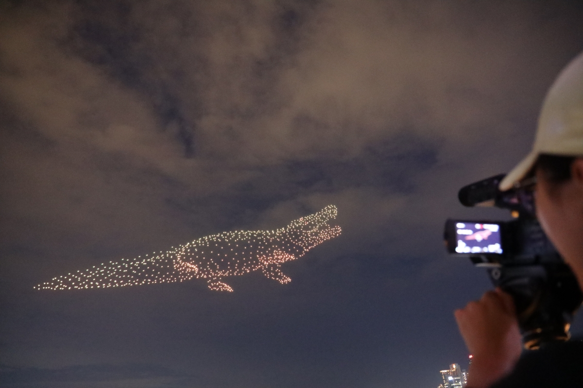 迎接《鱷魚》香港首演 灣仔海面無人機燈光秀