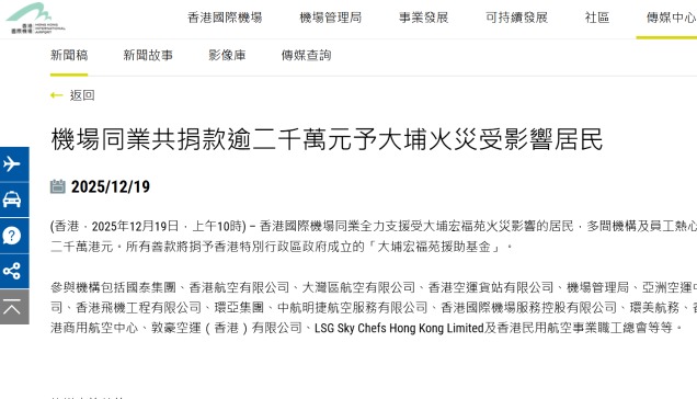 香港新聞網11月30日電 信德集團及其管理層何超瓊女士、何超鳳女士及何超蕸女士,宣佈合共捐出港幣一千萬元予香港特區政府的“大埔宏福苑援助基金”,發揮企業力量, 支援受大埔宏福苑火災影響市民。 大埔宏福苑發生的嚴重火災,集團對事件高度關注,深表痛惜,迅速集聚企業資源。除捐款外,亦全力支持員工參與各項救災善舉。信德集團向所有英勇參與救災工作的消防員、醫療團隊致以崇高敬意,對無私奉獻的社區組織、以至每一位熱心市民表達由衷感謝,並深切哀悼大火中不幸殉職的消防人員,向其家屬致以慰問。