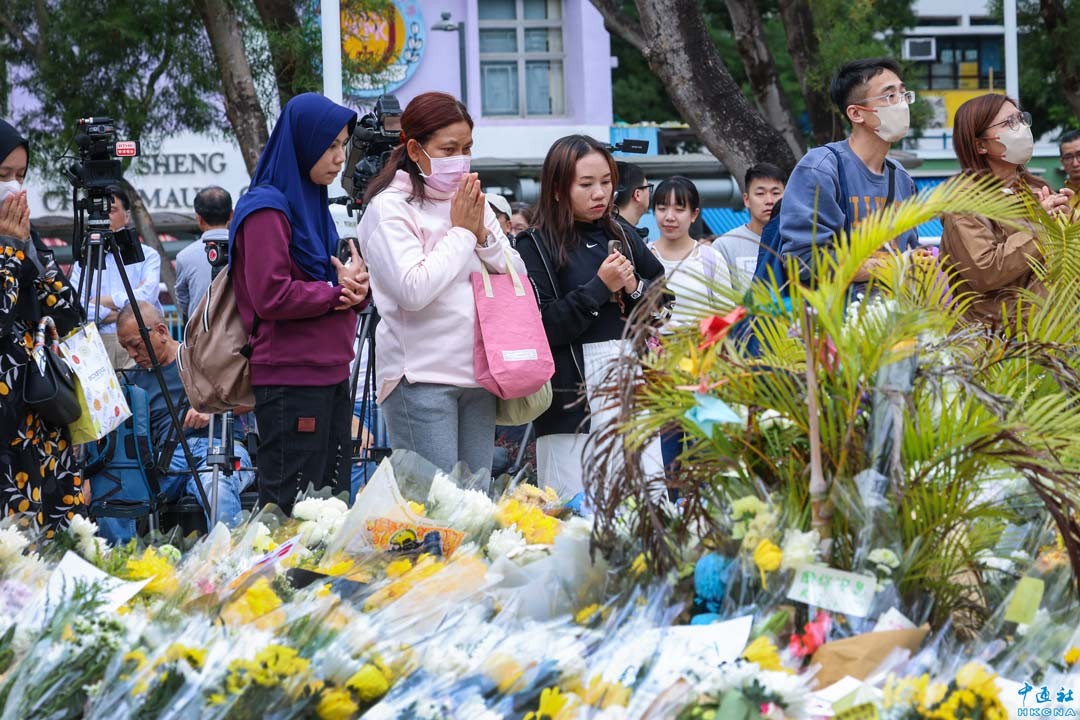 11月30日,香港眾多民眾自發前往大埔宏福苑火災現場排隊獻花,悼念火災罹難者。截至當天,大埔宏福苑發生的五級火,至今造成128人死亡,80多人受傷,約150人未能聯絡。(香港中通社記者 鄧梓傑 攝)