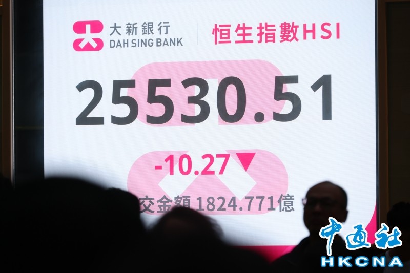 香港中通社12月11日電(記者 徐嘉儀)美國聯儲局一如預期減息0.25厘,港股11日高開低走,恒生指數收市報25530點,跌10點。大市成交額縮至1824億港元。