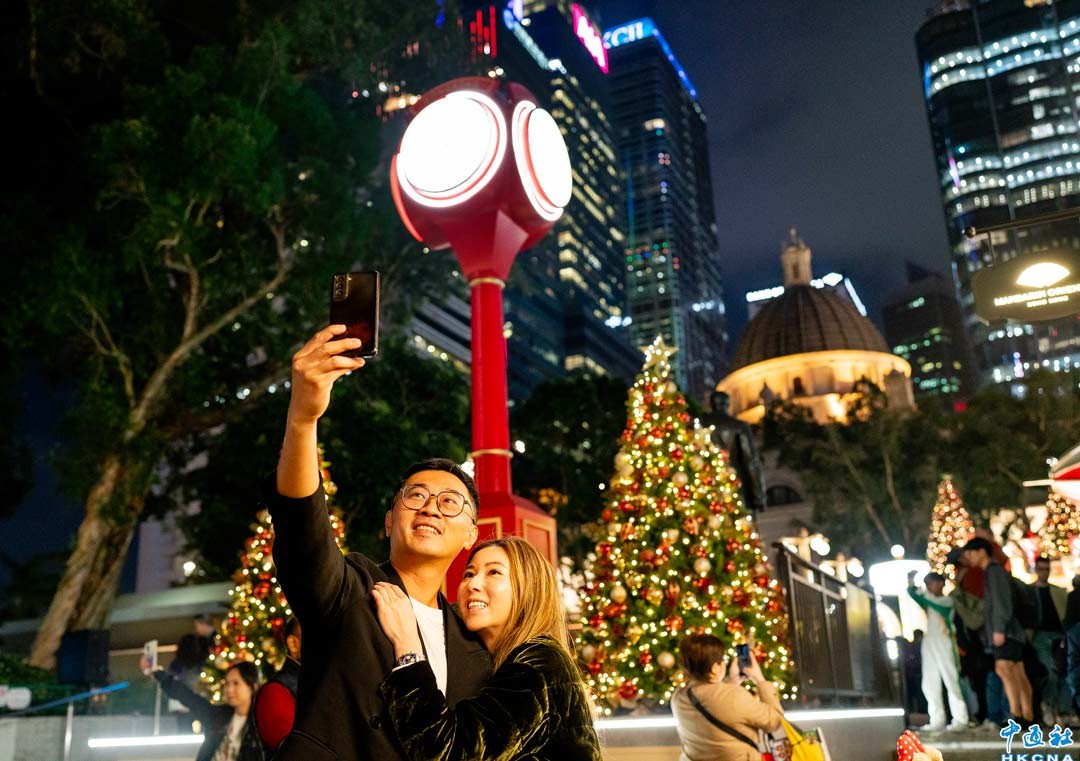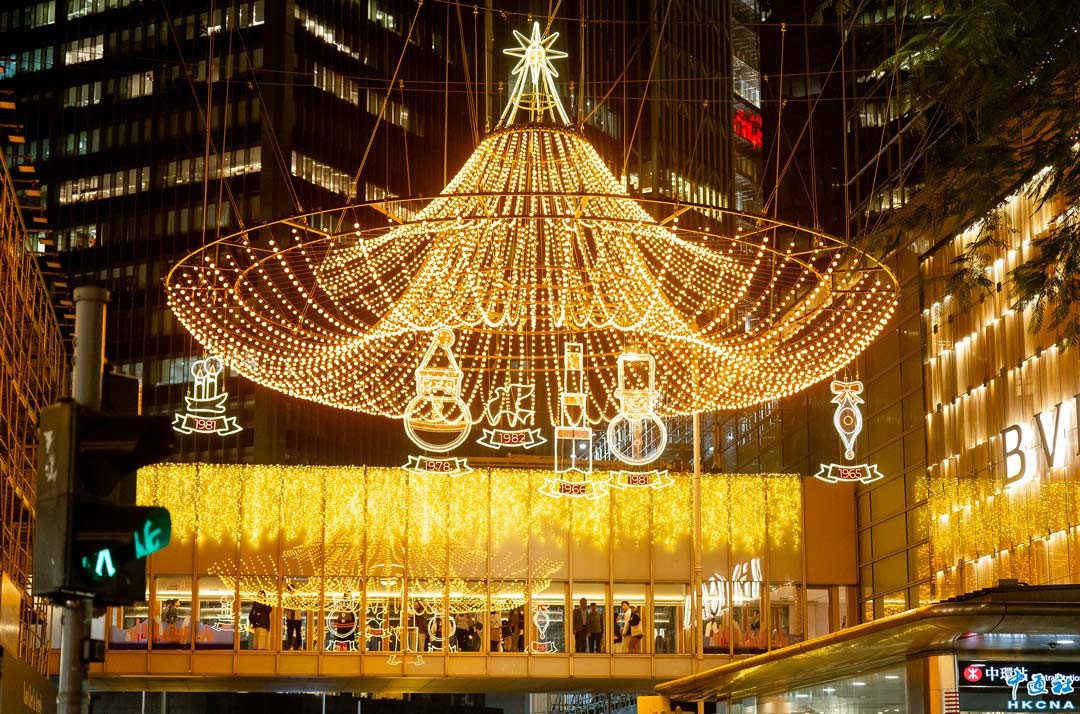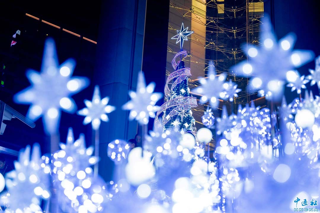 香港新聞網12月12日電(記者 陳奕啟) 12月12日,夜幕降臨,香港中環街頭亮起層層聖誕燈飾,寫字樓外的聖誕樹、行人天橋及街道兩旁的節日裝置,營造出濃厚的聖誕氣氛。市民及遊客放慢腳步,在遮打道一帶駐足觀賞,有人舉起手機拍照,有人與同伴合影留念。