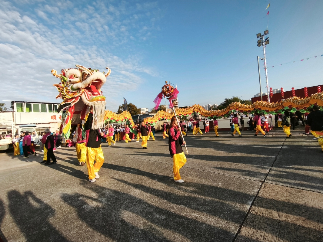 香港新聞網12月16日電(記者洪少葵)12月16日上午,香港新界廈村鄉鄧氏祠堂前鑼鼓喧天,金龍起舞,熱鬧歡騰。眾鄉親啟程趕赴錦田參加傳統盛事。