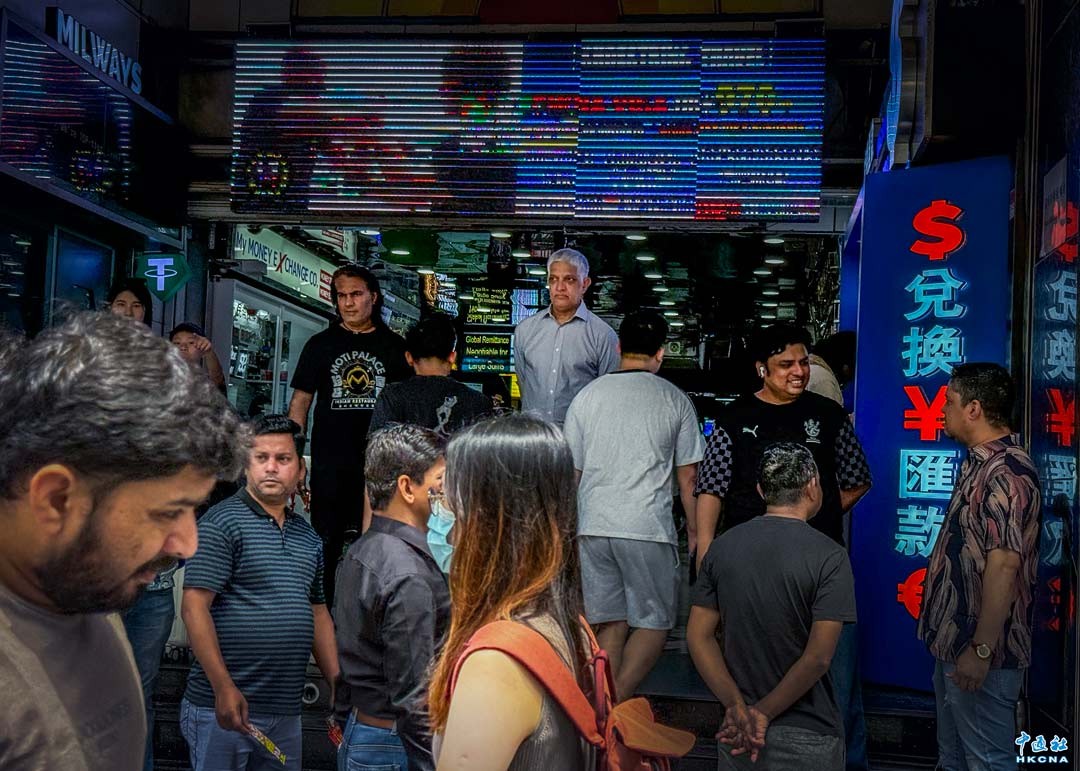 重慶大廈位於香港尖沙咀,於1961年建成,起初是高級住宅,後歷經變遷,成為匯聚各地少數族裔的混合大廈。走進大廈,咖哩香與香料味交織,不同膚色的人們在此忙碌或休息。一樓商鋪琳瑯滿目,有餐廳、有髪廊、有特色工藝品小店,也有外幣兌換店。樓上既有廉價賓館,也有貿易公司。在這里,生活日常充滿煙火氣,不同文化相互碰撞又和諧共生,構成了香港獨特的文化景觀 。(香港中通社記者 徐文峰 攝)