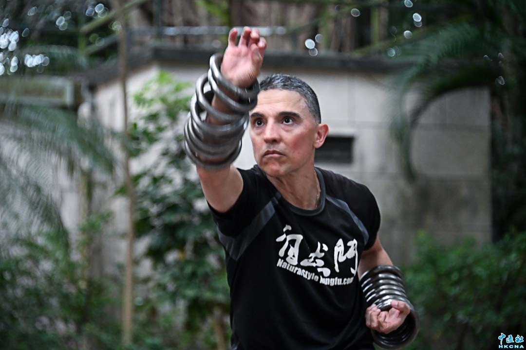 扎根香港的美國人Rudy魯迪為中國武術“開枝散葉”。 他每周都會在九龍公園內,教授外國弟子們自然門武術。 Rudy說,“我教外國人武術,也是希望把中國的好東西,'傳'出去。 60歲的Rudy來自美國德州,曾在北京體育大學及清華大學學習武術,也前赴少林寺,足跡遍佈湖南、福建等地,最後在福州機緣巧合接觸了中華武術流派“自然門”,為之著迷。(香港中通社記者 洪少葵 攝)