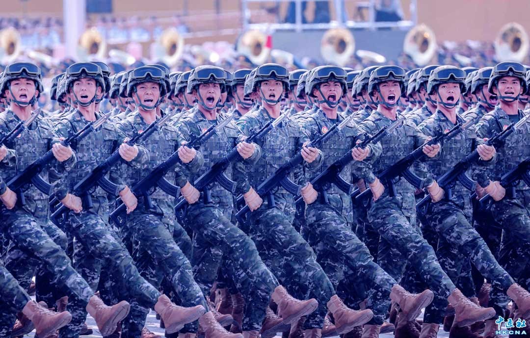 2025年9月3日上午,紀念中國人民抗日戰爭暨世界反法西斯戰爭勝利80周年大會在北京天安門廣場隆重舉行。圖為武警方隊。 (香港中通社記者 謝光磊 攝)