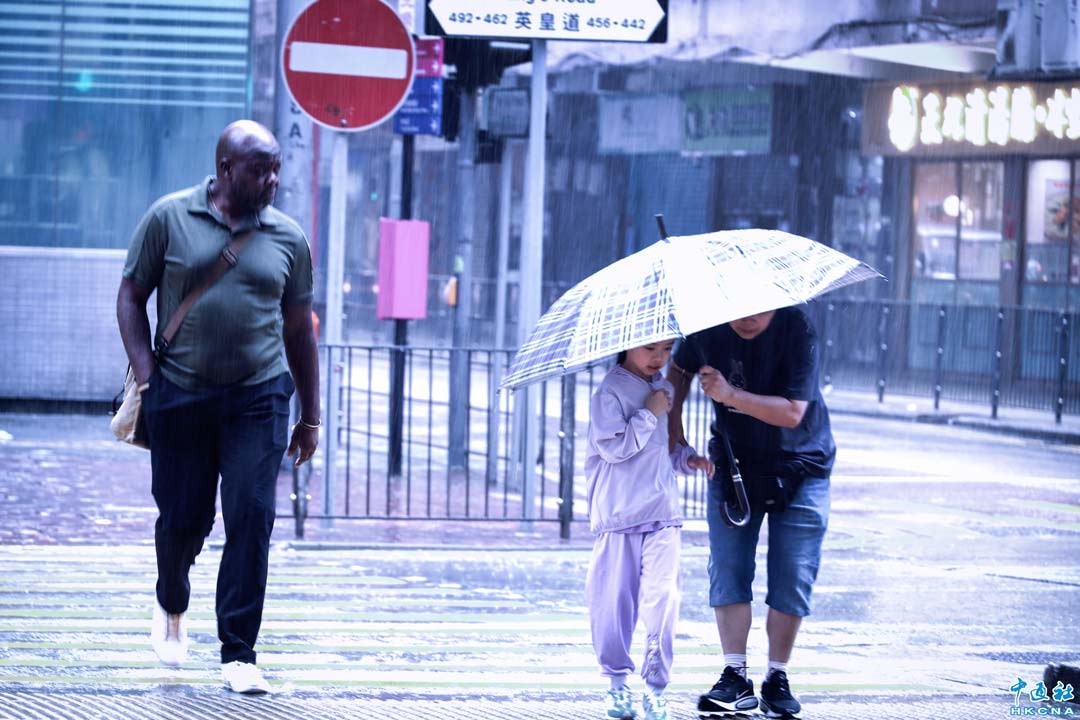 2025年9月8日早上,香港市民在八號東南烈風或暴風信號生效下出行。(香港中通社記者 洪少葵 攝)
