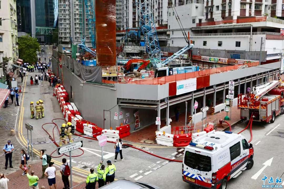 2025年9月19日中午12時許,香港警方接報鰂魚湧濱海街16-22號地盤發現一個約1.4米長懷疑戰時炸彈。警方爆炸品處理課及消防員在場處理,超過300人緊急疏散。 (香港中通社記者 洪少葵 攝)