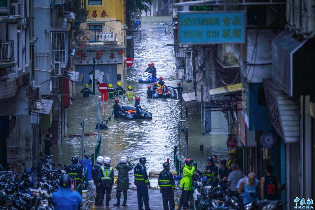 2025年9月24日,颱風”樺加沙”侵襲,澳門內港區多處水浸。 香港中通社圖片