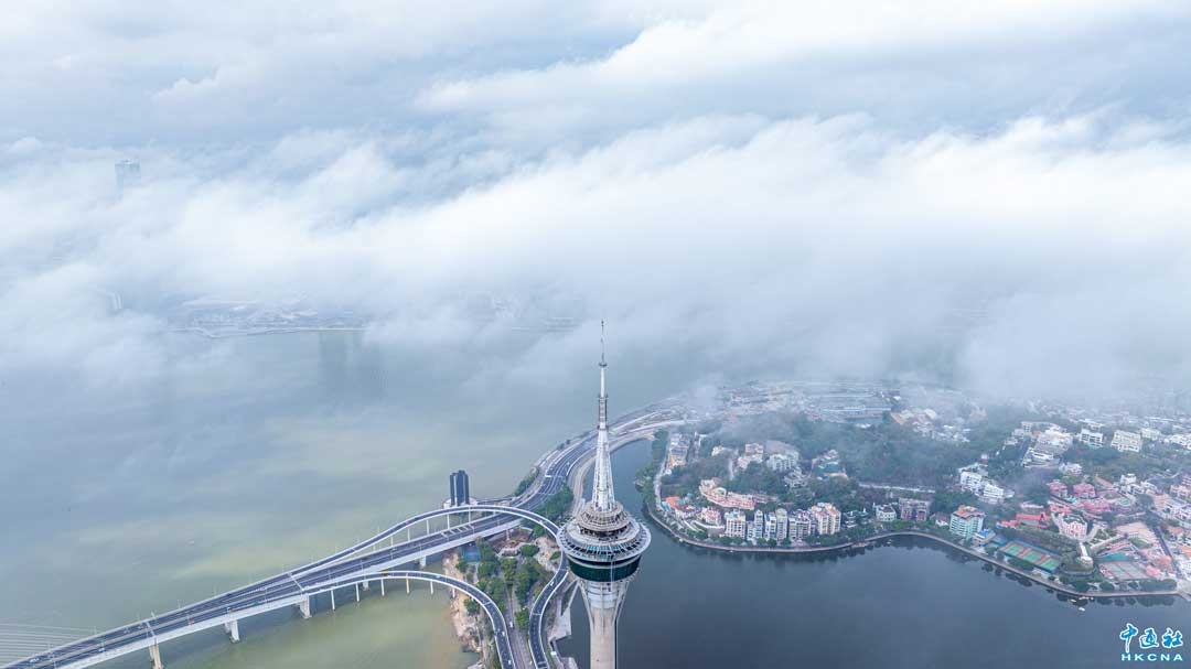 2025年3月2日,一股海洋性氣流正影響澳門天氣,早晚有薄霧或霧,霧景迷人。 香港中通社圖片