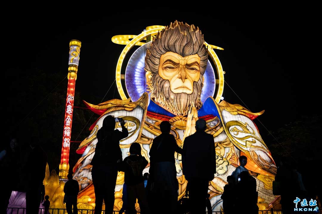 廣州南沙2025粵港澳大灣區燈會亮點眾多,18公尺高的“簪花女神”依水而立,結合動態眨眼設計,在燈光映照下栩栩如生,將東方古典之美展現得淋漓盡致。 “黑悟空”燈組則以金屬線條勾勒輪廓,搭配賽博龐克光影特效,重塑經典神話形象。這次燈會擁有雙非遺加持,是中國春節與自貢綵燈技藝的融合,展期由1月22日至3月30日,橫跨68天,是一場文化與科技極致交融的光影盛宴。圖為酷炫的“黑悟空”。(香港中通社記者 徐文峰 攝)