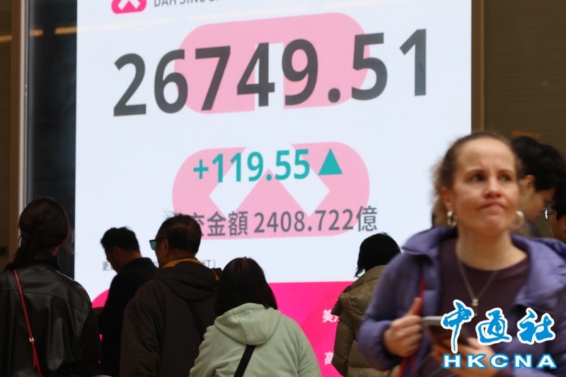 香港中通社1月23日電(記者 徐嘉儀)歐美緊張關係降溫,港股連升第三天,恒生指數23日收市報26749點,升119點。大市成交額為2408億港元。全周計,恒指累跌95點。