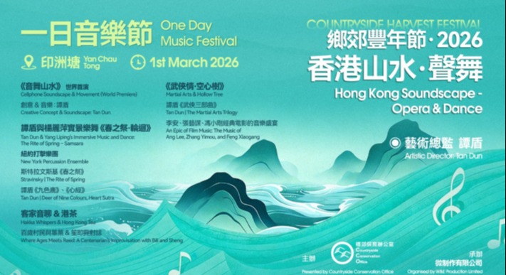 香港中通社2月27日電 香港特區政府環境及生態局轄下鄉郊保育辦公室,將於3月1日舉辦“鄉郊豐年節2026:‘香港山水·聲舞’一日音樂節”,由國際知名作曲家兼指揮家譚盾擔任藝術總監及指揮。