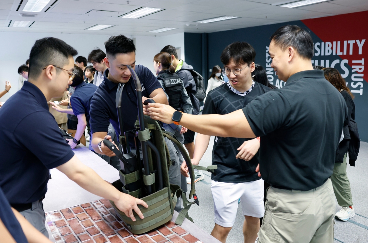 參與者體驗廉署執法人員破門裝備。